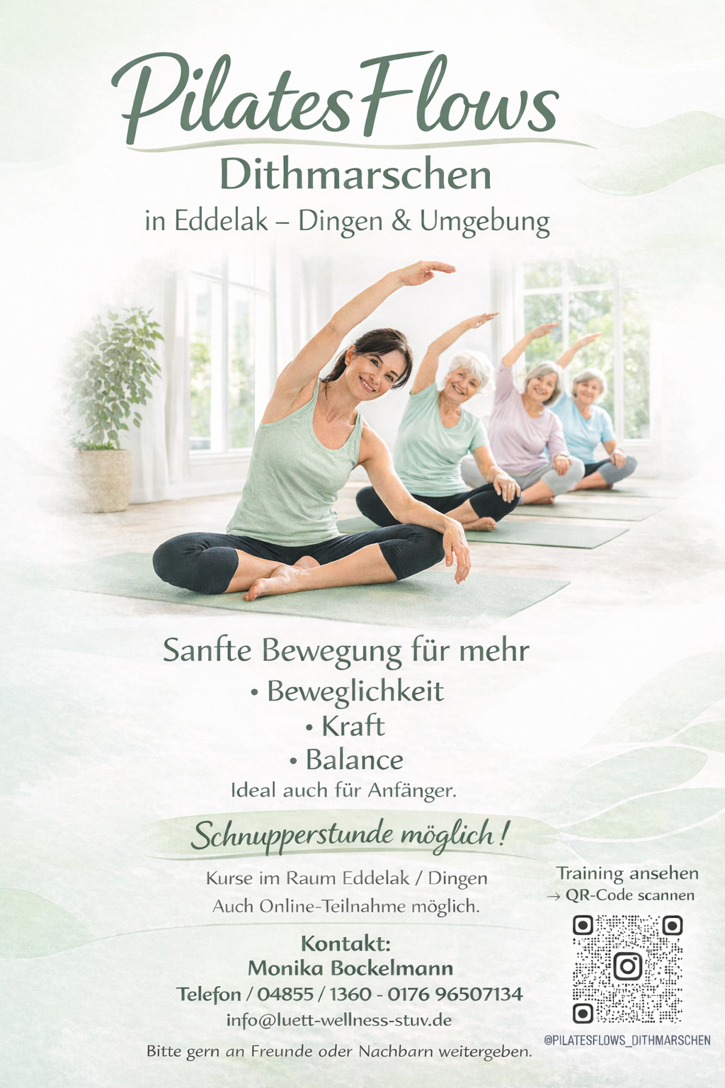 Pilates Flows + Zu Google Kalender hinzufügen + iCal / Outlook exportieren Datum 17 März 2026 Uhrzeit 18:30 - 19:30 Kategorie Sport Veranstalter Monika Bockelmann Telefon Mobil 0176 96 50 7134 E-Mail info@luett-wellness-stuv.de Nächster Termin Zur Terminseite Datum 24 März 2026 Uhrzeit 18:30 - 19:30 Teile diese Veranstaltung